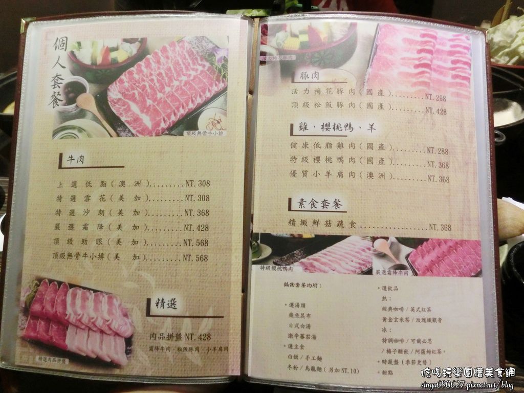 ▲『恆八味屋日式火鍋專賣店』個人套餐蠻多種肉類可以選擇,店家還有素食套餐可供客人選擇,真的是造福很多素食主義者阿阿阿~~價格$288~$568。