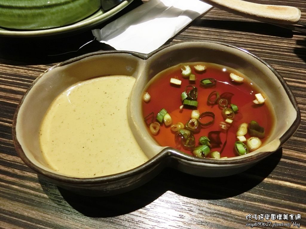 ▲『恆八味屋日式火鍋專賣店』吃火鍋一定都會用到的沾醬,店家所提供的醬料有兩種,左邊為胡麻醬,右邊為澄醋醬,