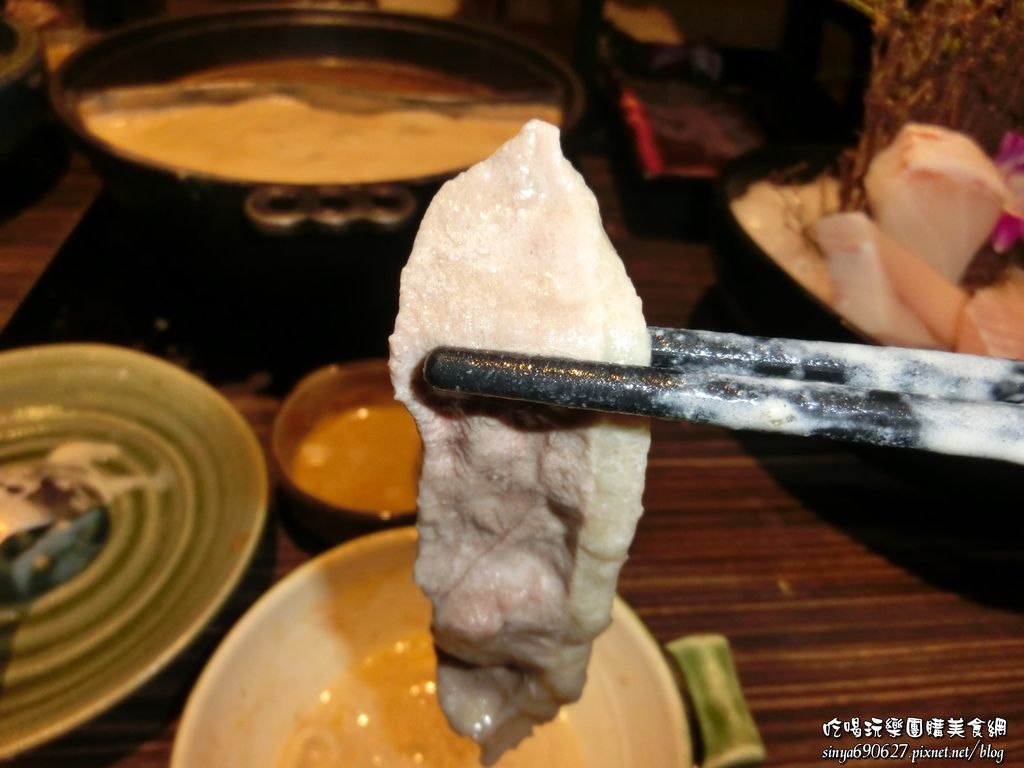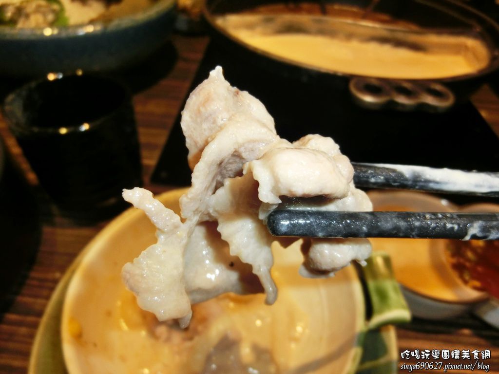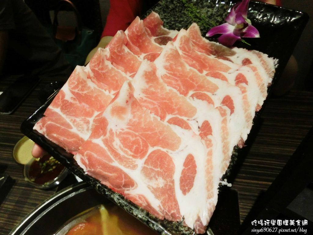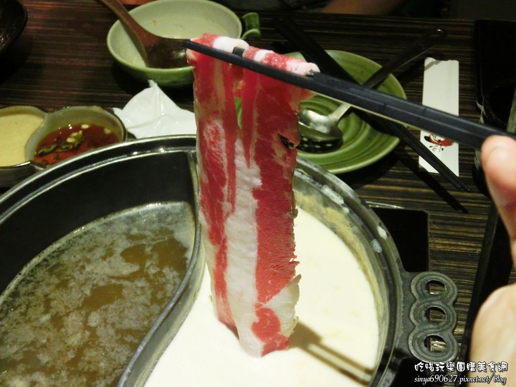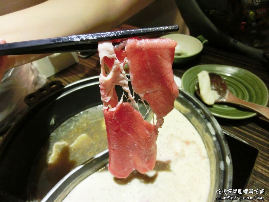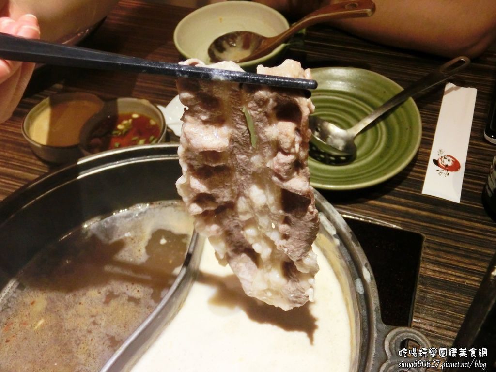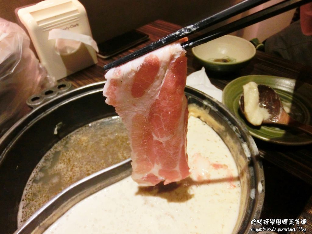▲『恆八味屋日式火鍋專賣店』店家採用國產活力豬,油花分布均勻,肉片吸收白湯醬汁後,吃起來超多汁鮮嫩,超juicy,沾上胡麻醬一起吃,美味加倍!!
