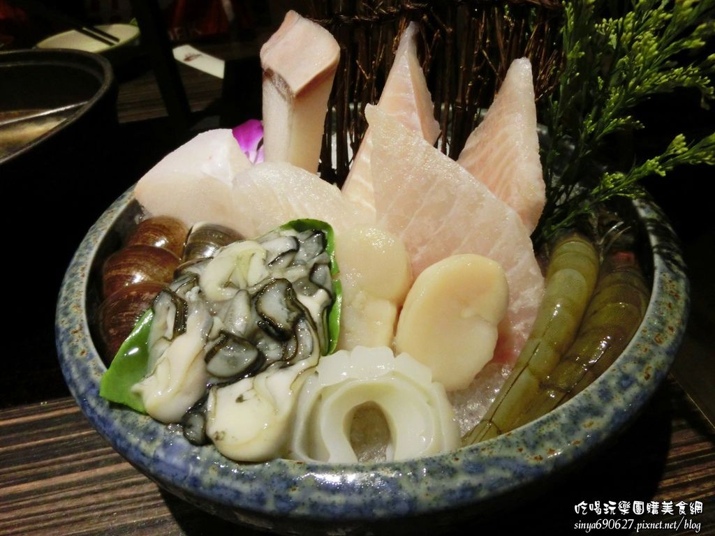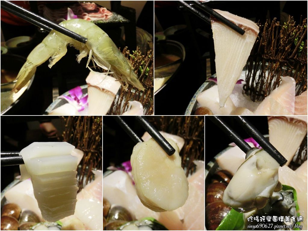 看到海鮮三盛擺盤還蠻美,賣相超好的啦!!裡面有鮮魚片、鮮蝦、文蛤,看到這樣新鮮的海鮮類和肉品在眼前,我們看到都垂涎三尺,想趕快好好大快朵頤一番阿阿阿~~~