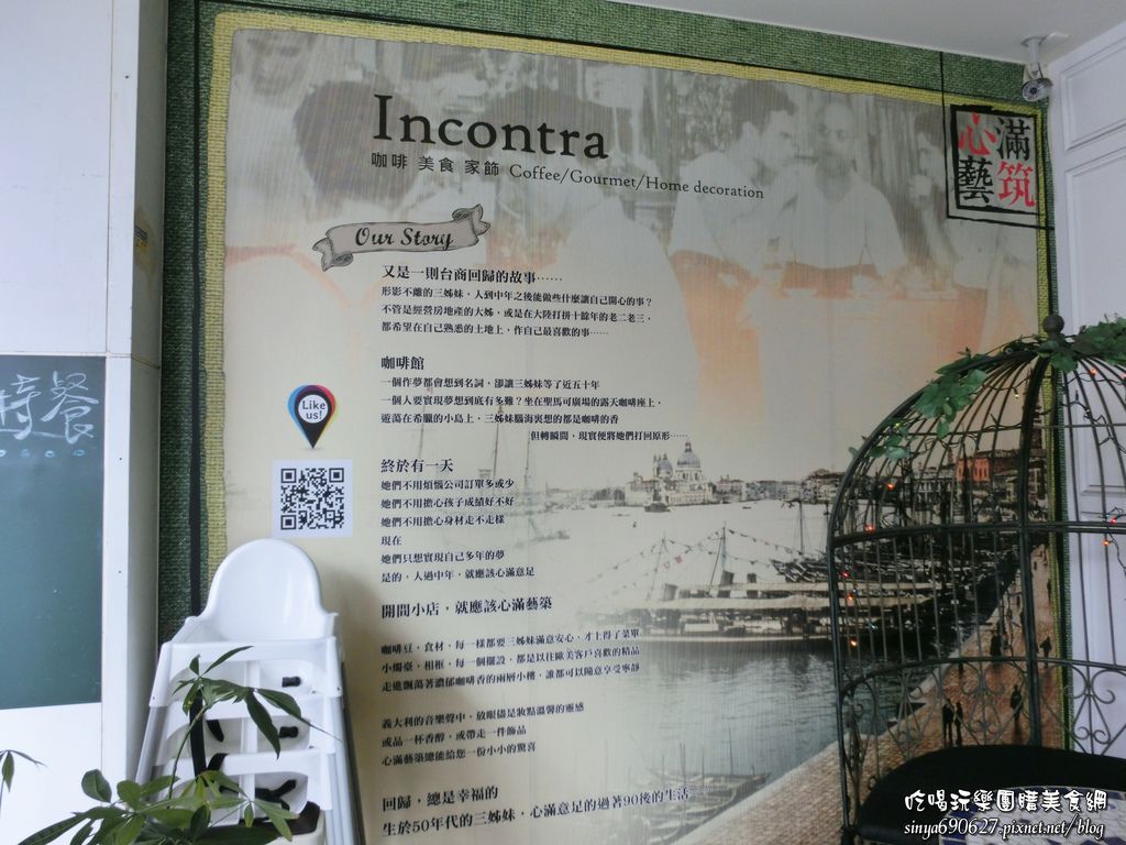 ▲『心滿藝筑 X Incontra』門外的牆上可以看到這間餐廳的故事,在業界打滾多年的三姊妹,時時夢想著開一間屬於自己的咖啡館,