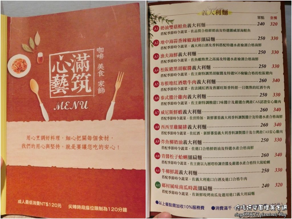 ▲『心滿藝筑 X Incontra』Menu第一頁就是義大利麵,能夠選擇的種類還不少,單點和套餐價差$80而已,所以當然要選套餐比較划算囉!