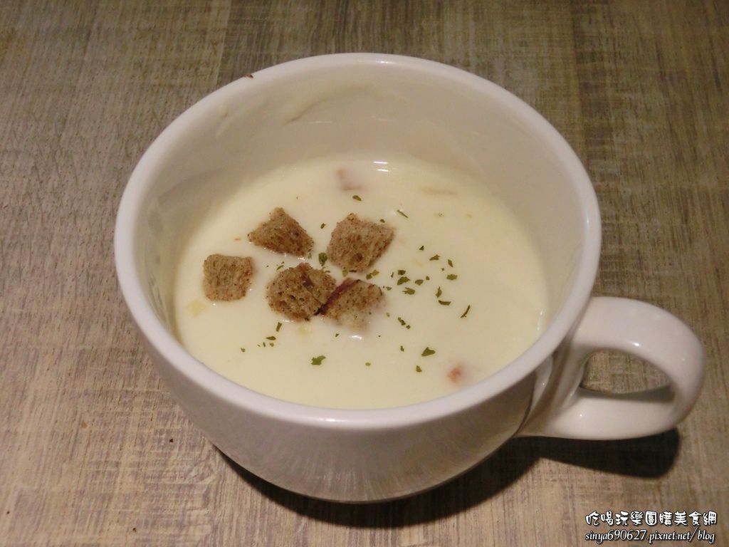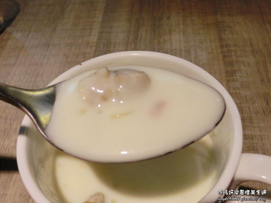 ▲『心滿藝筑 X Incontra』特選濃湯裡面的配料有火腿、麵包丁、蘑菇、鮮奶油、鮮奶、高湯,喝起來非常香醇順口,鹹甜適中!