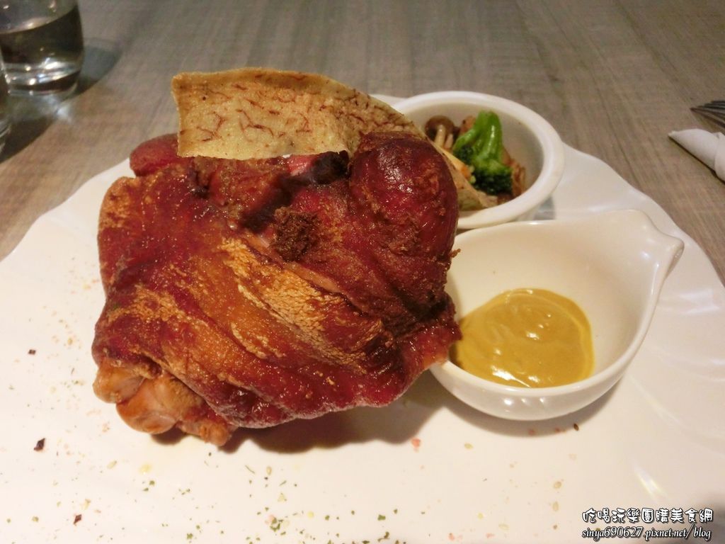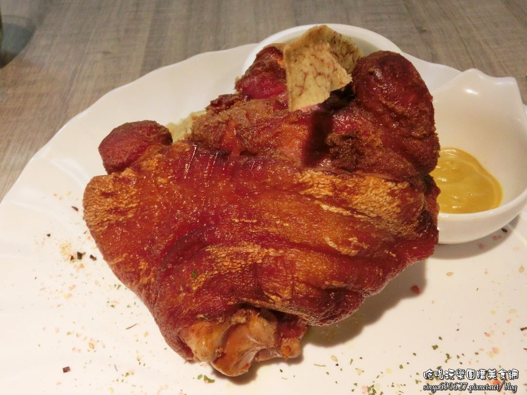 ▲『心滿藝筑 X Incontra』德國豬腳的份量真的好大,比我的臉還大阿!看到這香味四溢的豬腳已經令我們食指大動,想趕快大快朵頤一番。