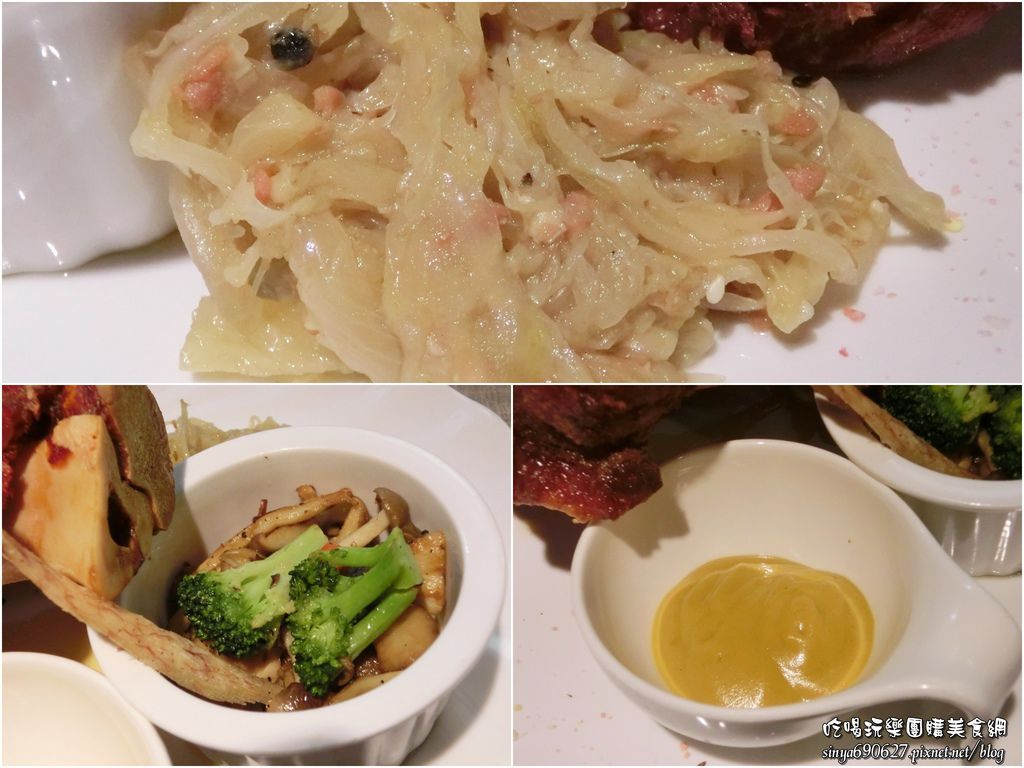 ▲『心滿藝筑 X Incontra』豬腳的配菜有酸菜、多種菇類、花椰菜、自製蜂蜜芥末醬,拿來搭配豬腳一起吃很對味喔!