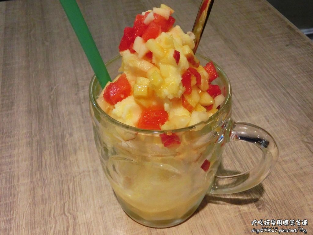水果冰沙以當季新鮮水果及冰沙一起搭配,吃起來酸甜可口,很適合這種炎熱的天氣,好清涼消暑啊!